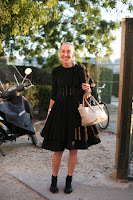 If we choose not become invisible as we age, we need to find clothes that fit and flatter, that express our individuality, not repress it, but at the same time we should, I think, avoid clothes that are too girly (and by that I don't mean too feminine, not at all.) There is nothing more sad and desperate than a woman of fifty boasting that she can wear her daughter's clothes. It's too do with the contrast between the body and the face.