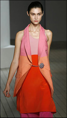 Looking at the SS09 shows, it's clear that the maxi dress continues for a third year. The maxi dresses which appeared on the runways the summer before last were too much like the maxi dresses of the 70s for me to feel comfortable wearing them a second time round, but this seasons they're evolving away from the frills and tiers. Here's Cavalli's take.